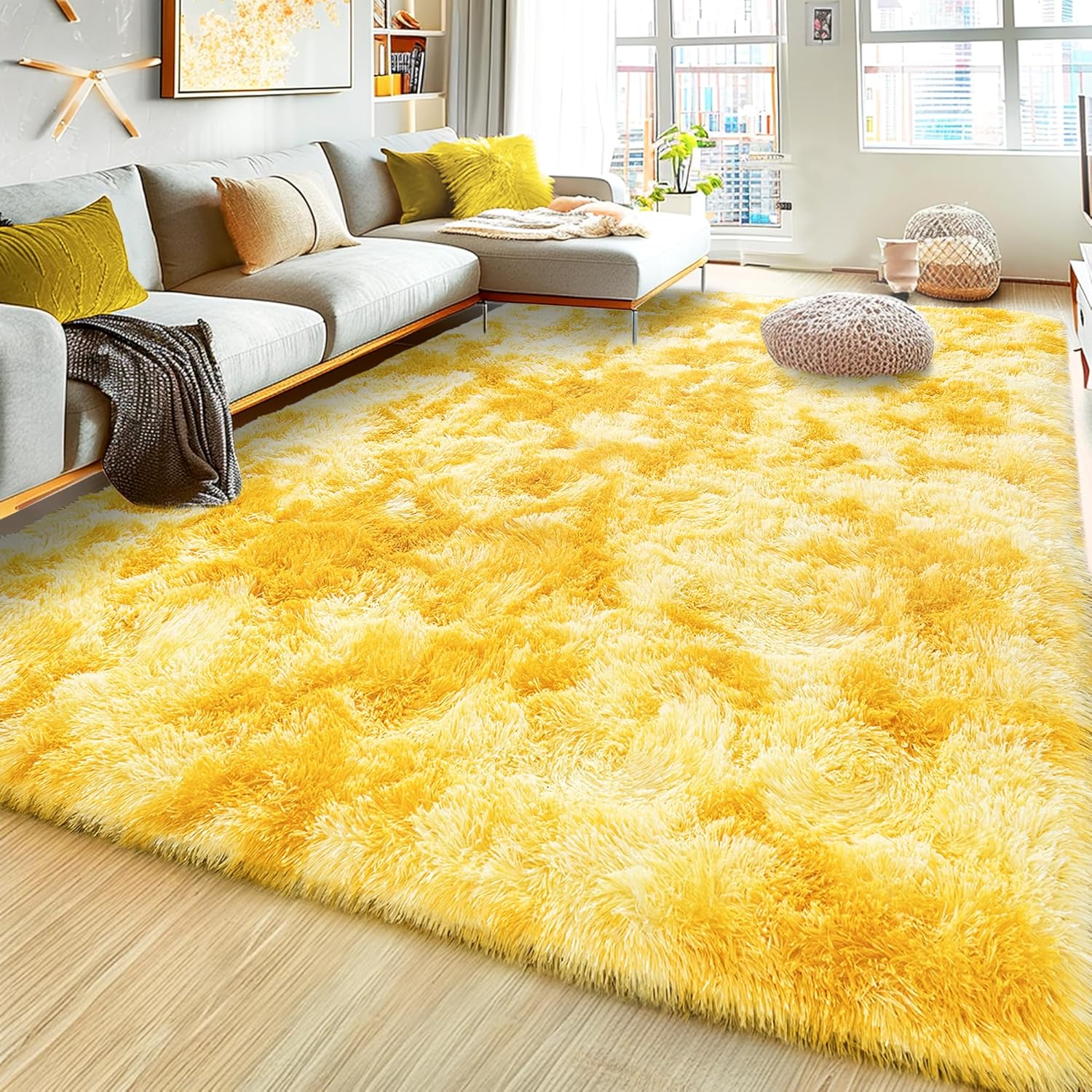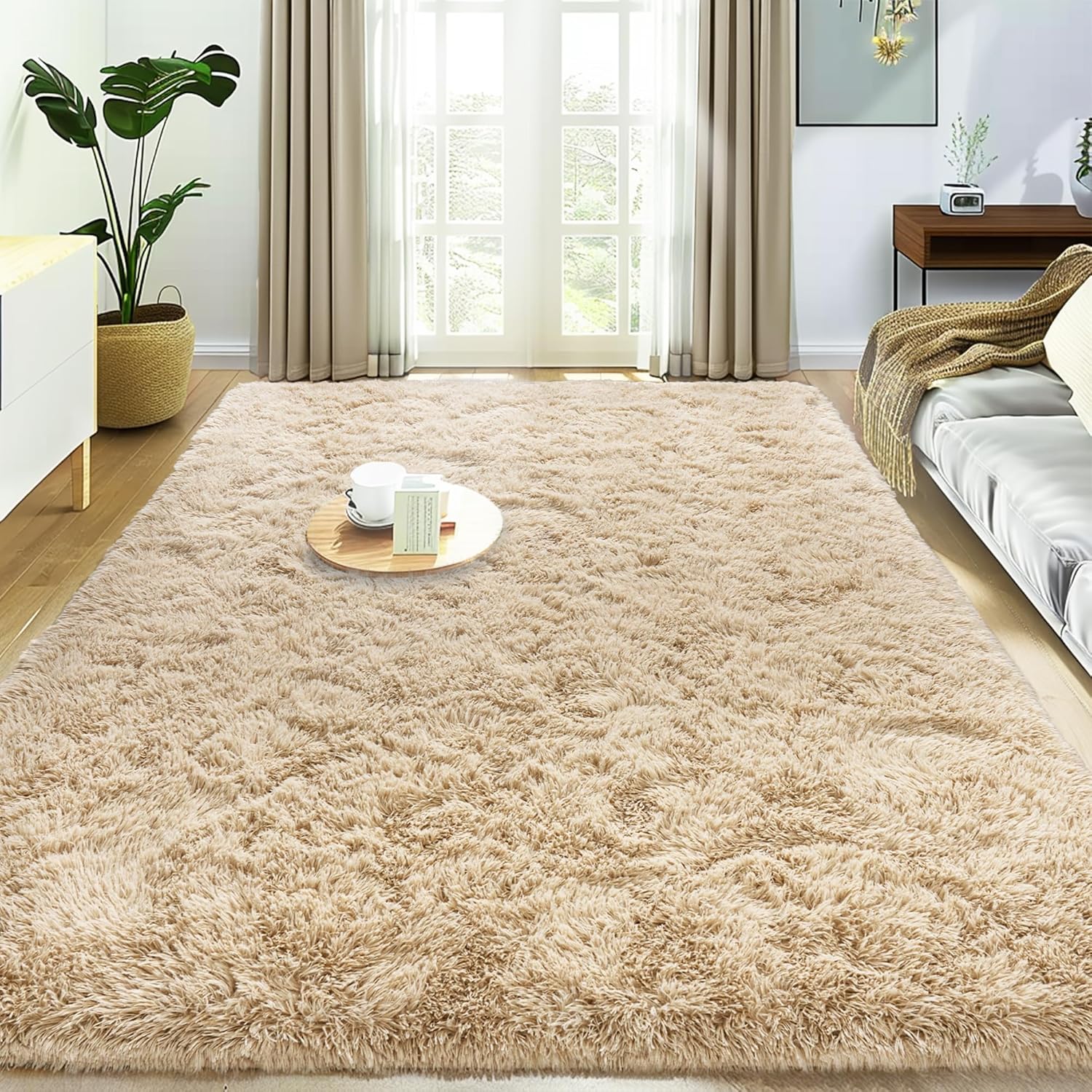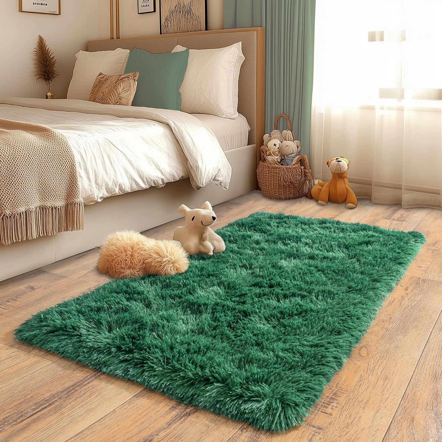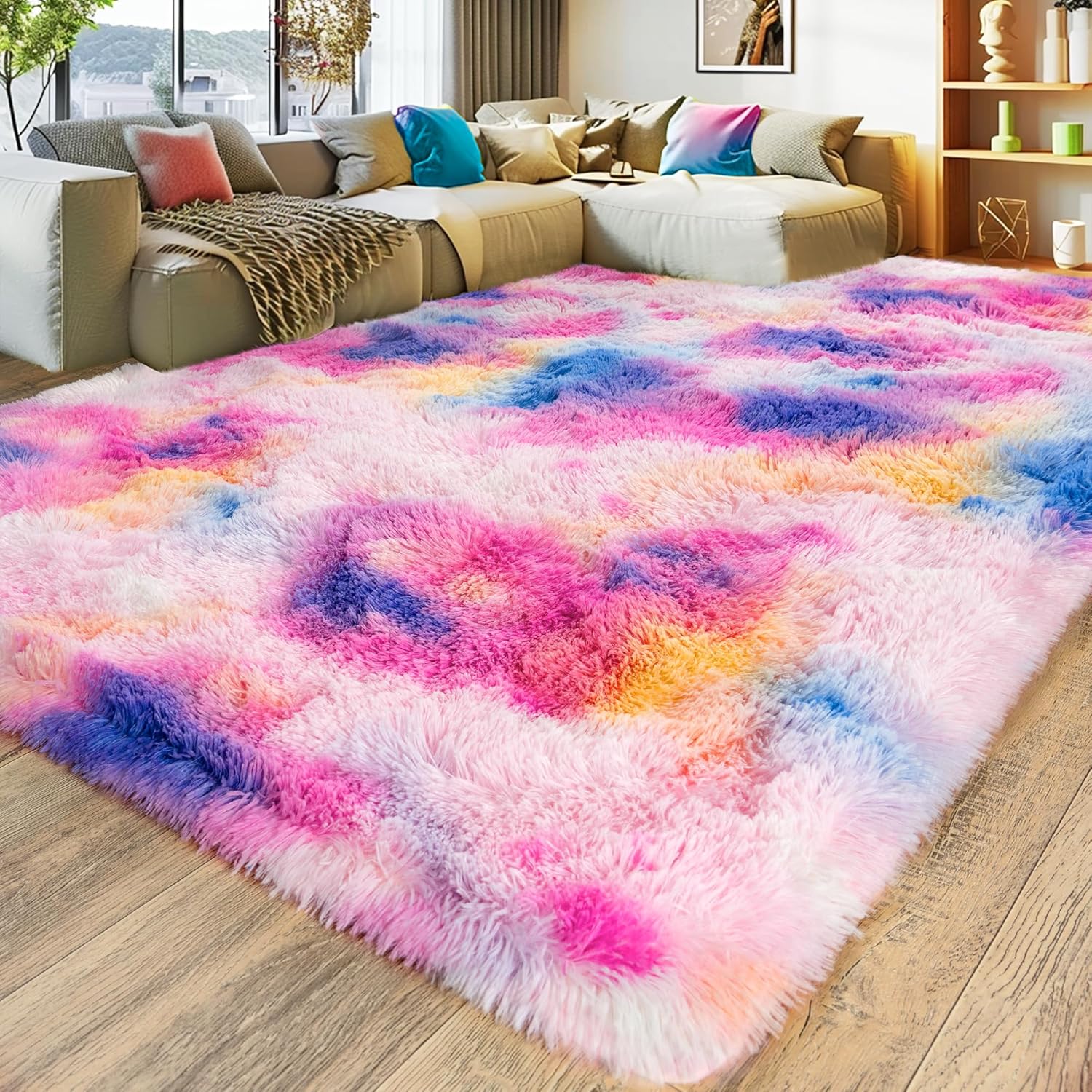 Luxurious fluffy area rug kid's rug for living room bedroom nursery. Size: 2 x 3 ft / 2 x 4 ft / 2 x 6 ft / 4 x 6ft / 5 x 7 ft / 6 x 9 ft / 8 x 10 ft / 9 x 12ft Various Colors To Choose: Tie-Dyed Purple, Purple, Green, Charcoal, Dark blue, Rainbow, Dark Rainbow, Camel, Hot Pink, Tie-Dyed Yellow, Royal Blue,Dark Blue,Charcoal Feature: Versatile Usage: Living Room Rug / Nursery Rug / Bedroom Rug / Kids Room Rug / Boys Rug / Classroom Rug / Dorm Rug / Girls Rug / Home Decor Rug. Softest fluffy rug: Comfortable shaggy plush microfiber children rug, keep warm and quick drying, will leave your child a soft tactility. Environmentally friendly high-quality materials: Our rugs are made of high-quality fiber fabrics, which will not fade or fall off. Good choice for carpet: Easy cleaning、durability and non-slip bottom are the best features of the shaggy rug. Care Instructions: 1. As a portable rug, makes it easy to take it outside to shake the dirt out. It can be hand washed or vacuum it with a low-power handheld vacuum. 2. If use washing machine, please put it in a laundry bag. Using cold water and delicate setting, don't worry fade or shed after cleaning. 3. Shaking it to fluff up the fur after spin dry by washing machine, hung your rug out to dry on the clothesline. Please Note: Our rug packed in vacumm bag, it will look more thinner than the original, please don't worry, it will be restored 2 or 5 days later.