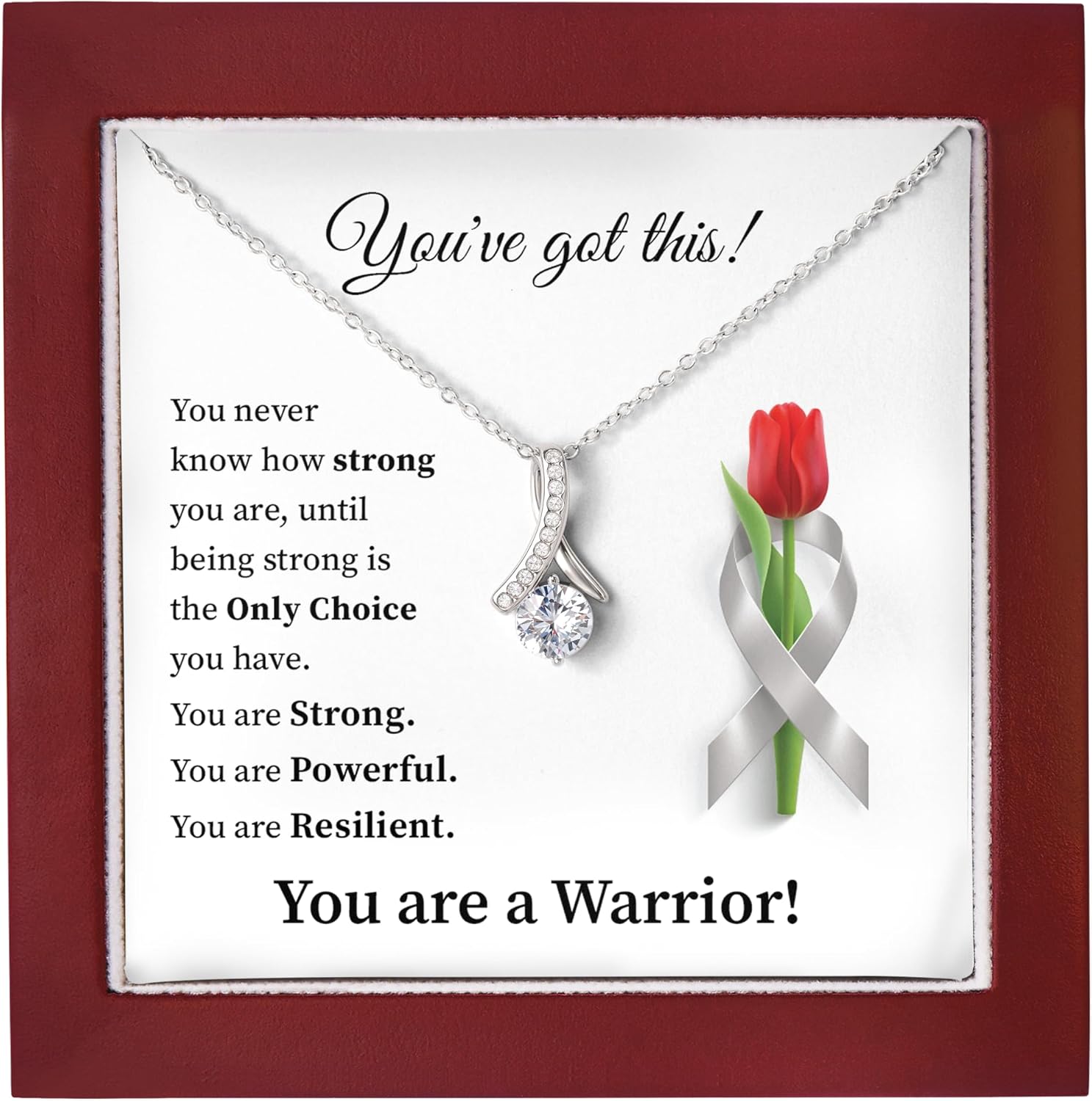 Imagine her reaction when she opens this stunning gift! The Alluring Beauty necklace features a petite ribbon shaped pendant that is sure to dazzle your special someone. Whether it's a birthday or anniversary, make sure to get her a gift she will love for years to come. 14k white gold finish or 18k yellow gold finish over stainless steel. 7mm cubic zirconia. Pendant dimensions: 0.8" (20mm) height / 0.4" (10mm) width. Adjustable length: 18" - 22" (45.72 cm - 55.88 cm). Lobster clasp. Your piece is lovingly packaged in a complimentary soft touch box for easy gifting. Elevate your presentation by upgrading to the mahogany style luxury box, which features a brilliant LED spotlight.