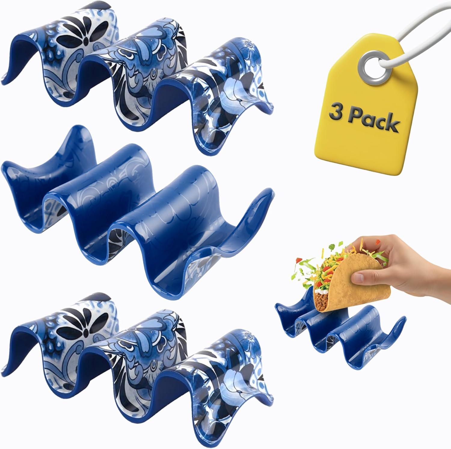 Bring convenience and style to taco nights with the Prepara Taco Stand 3-Pack in vibrant blue, yellow, and red, crafted to keep tacos upright for easy filling and serving. This durable melamine taco shell holder is perfect for both home cooks and restaurant taco bars seeking a practical, mess-free solution for taco presentation. Its robust construction withstands frequent use, while the bright color adds a fun, casual vibe to any dining environment, from festive taco parties and family dinners to busy restaurant kitchens and catering events. Designed for versatility, this taco holder doubles as essential serveware that organizes your taco shells neatly on countertops, buffet lines, or dining tables, making it ideal for food service professionals and casual entertaining alike. Dishwasher safe for quick cleanup, it supports smooth kitchen operations whether at home or in commercial settings. Elevate your taco serving experience with a playful, reliable accessory that enhances any fun dinner party, taco night, or restaurant tabletop presentation.