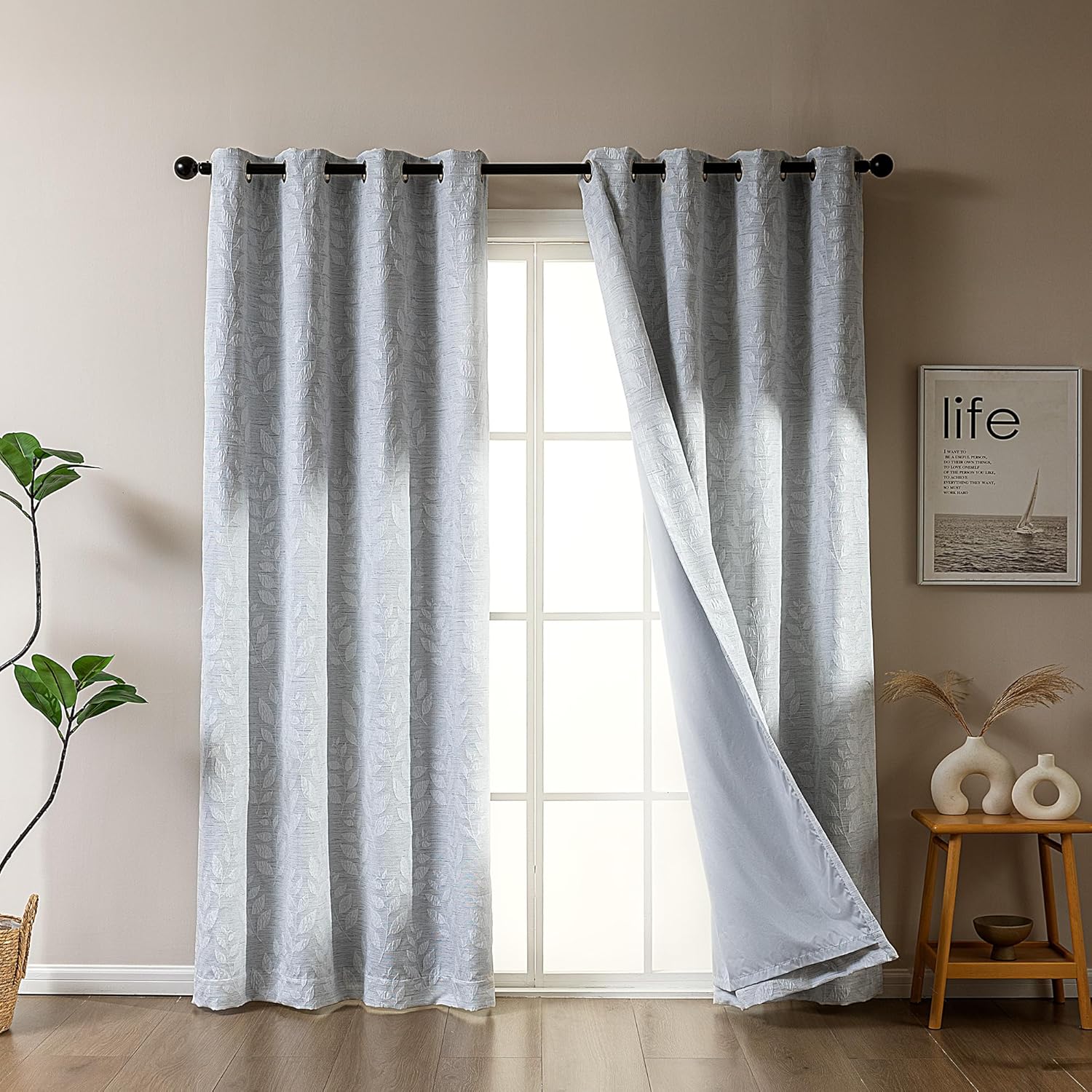 • Energy Smart: Featuring thermal-insulated layers, the curtains help regulate room temperature by reducing heat in summer and retaining warmth in winter, leading to energy savings and enhanced comfort